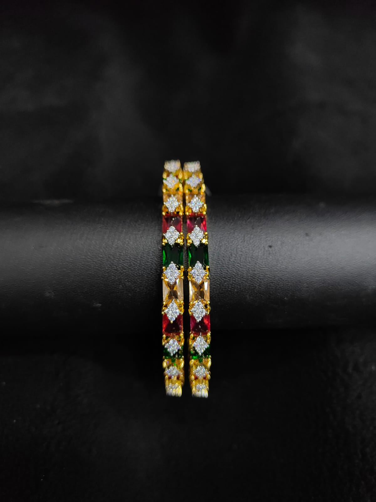 GOLD POLISH MULTI COLOR STONE BANGLE