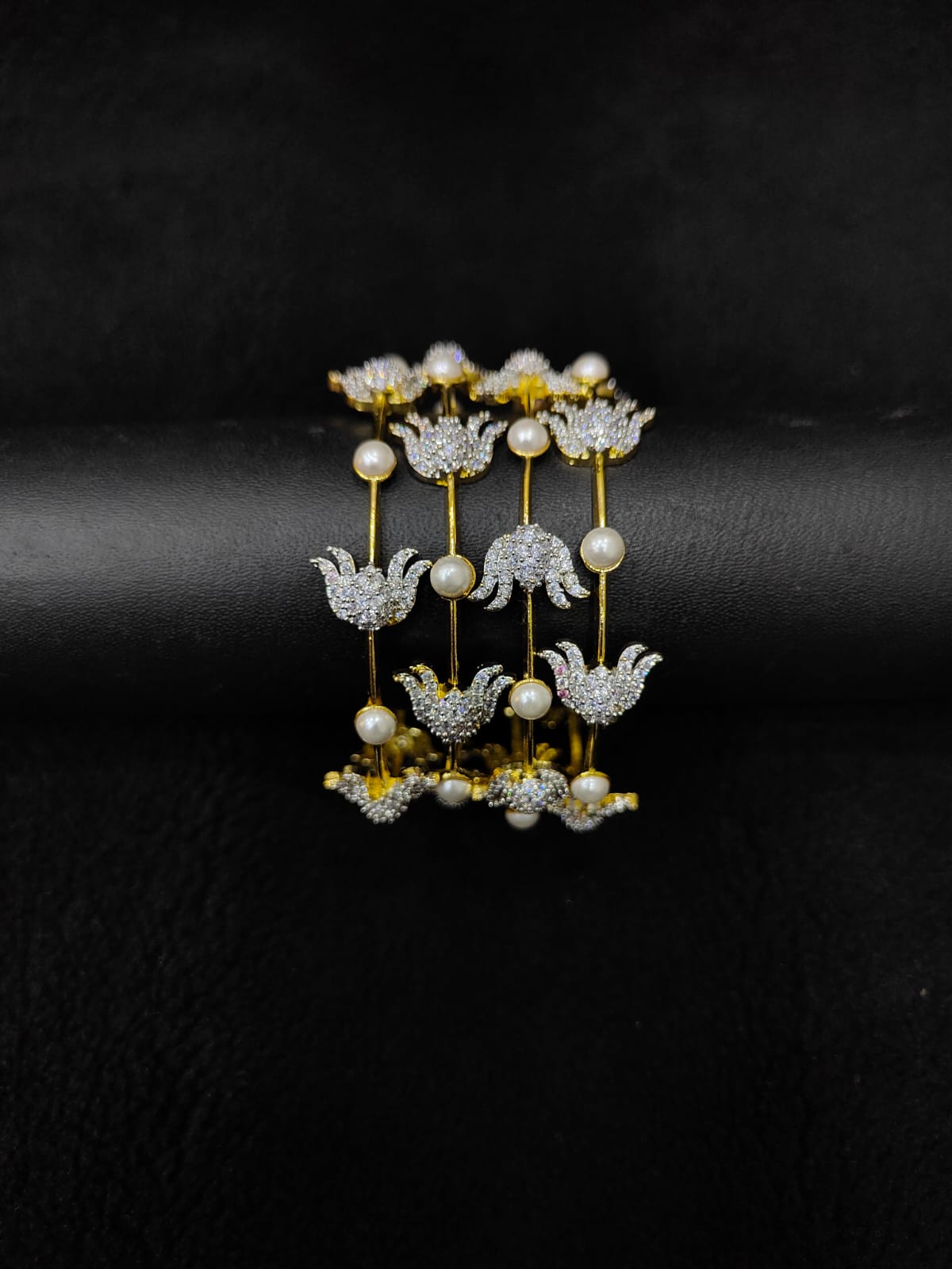 GOLD POLISH LOTUS DESIGN AD ZIRCON STONE SET OF 4 BANGLE