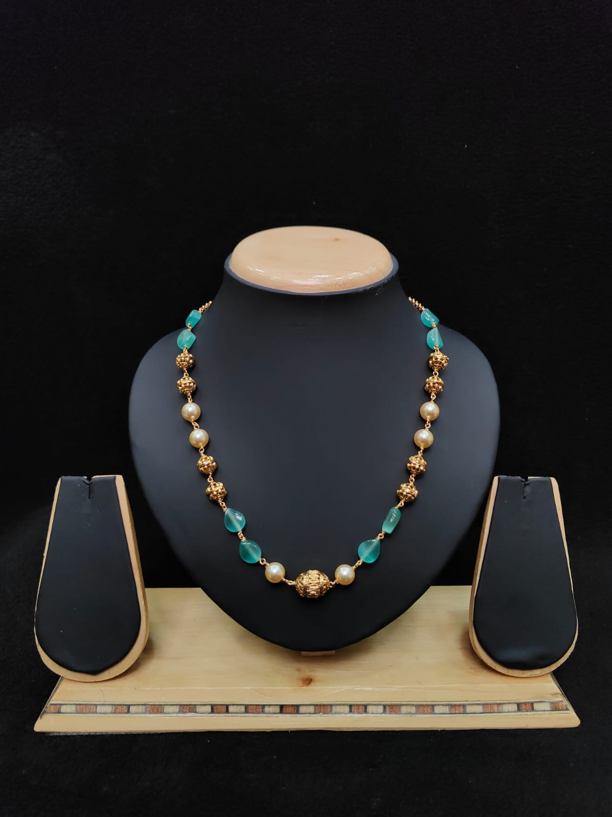 MINT GREEN BEADS AND PEARL MALA WITH GOLDEN BALLS