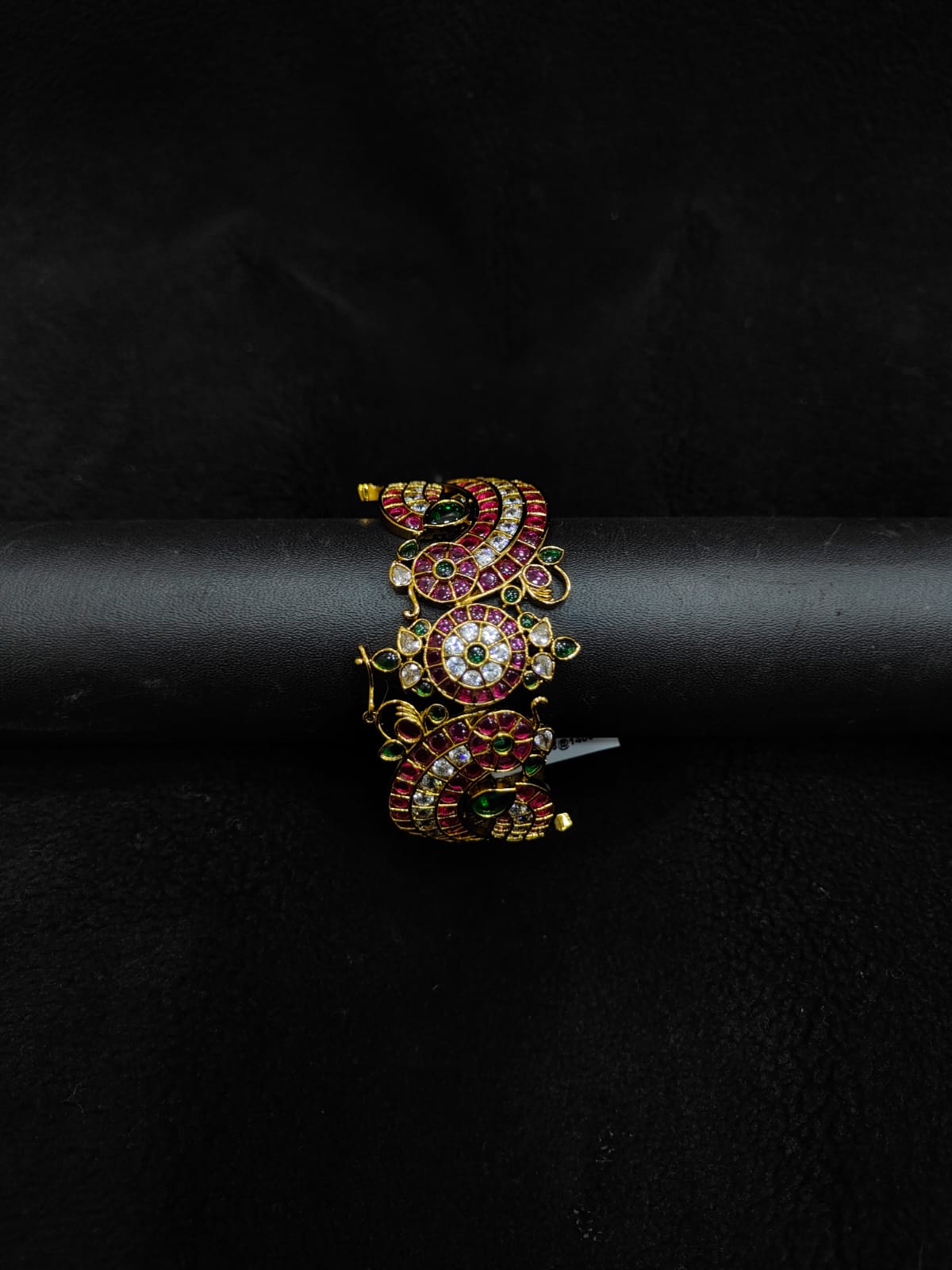 PEACOCK DESIGN ANTIQUE KEMP STONE BRACELET WITH CLIP TYPE