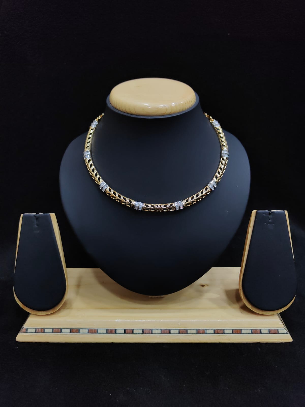 LEAF DESIGN GOLD POLISH HASLI CHAIN ZIRCON STONE