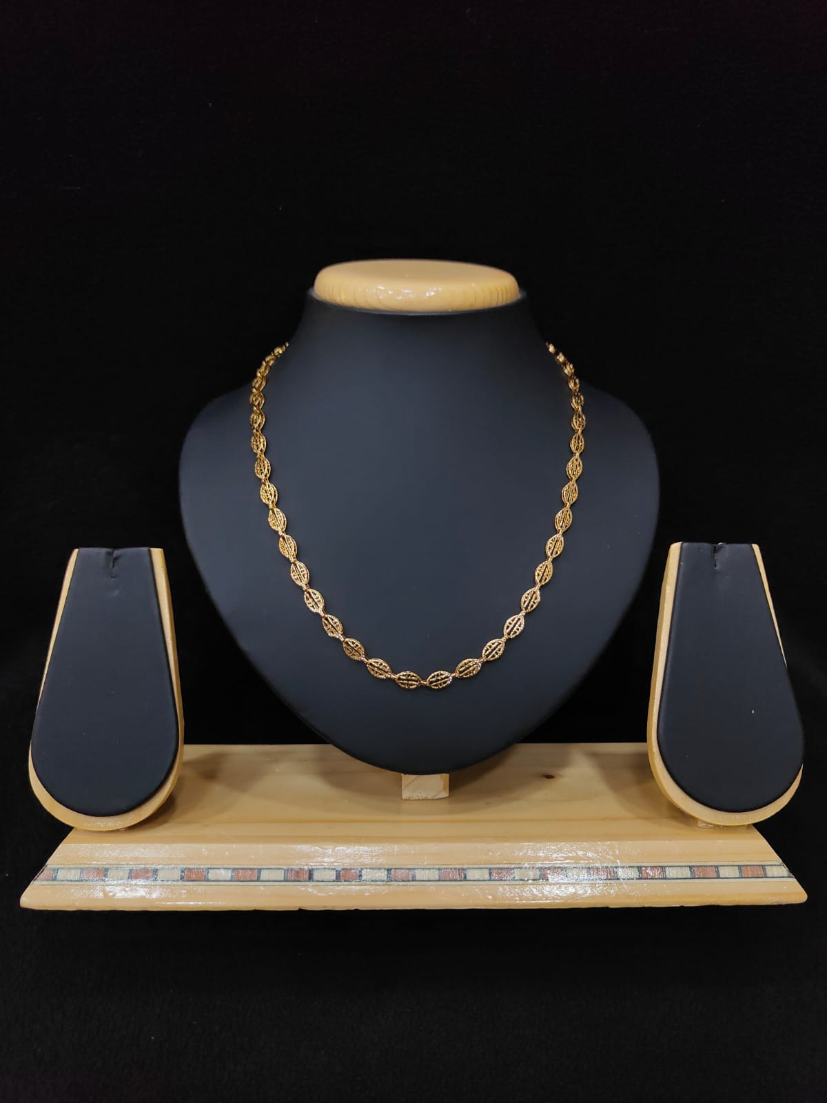 GOLD POLISH LEAF DESIGN DAILY WEAR SHORT CHAIN WITH 18 INCH