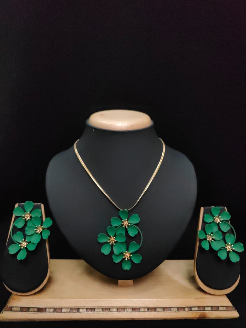 BOTTLE GREEN 3D FLORAL DESIGN WITH EARRINGS