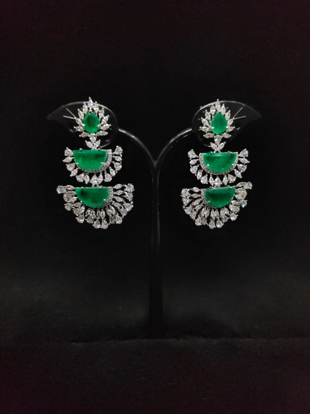 SILVER POLISH FLORAL DESIGN AD ZIRCON STONE EARRINGS
