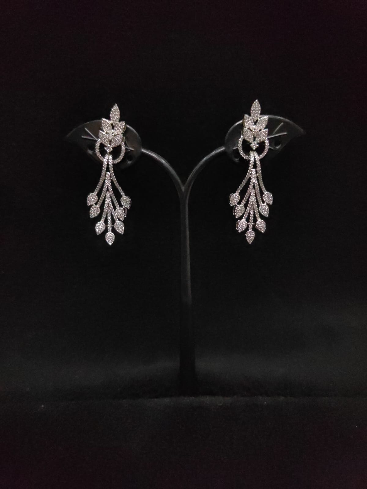 SILVER POLISH FLORAL DESIGN AD ZIRCON STONE EARRINGS