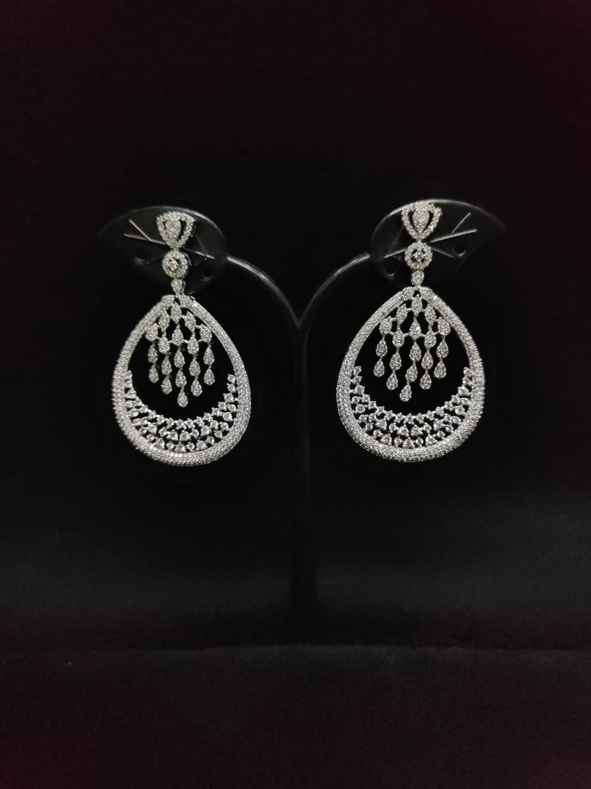 GOLD POLISH RAIN DROP DESIGN AD ZIRCON STONE EARRINGS