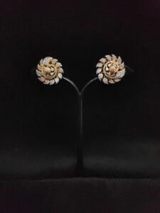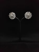 SILVER POLISH FLORAL DESIGN AD ZIRCON STONE EARRINGS