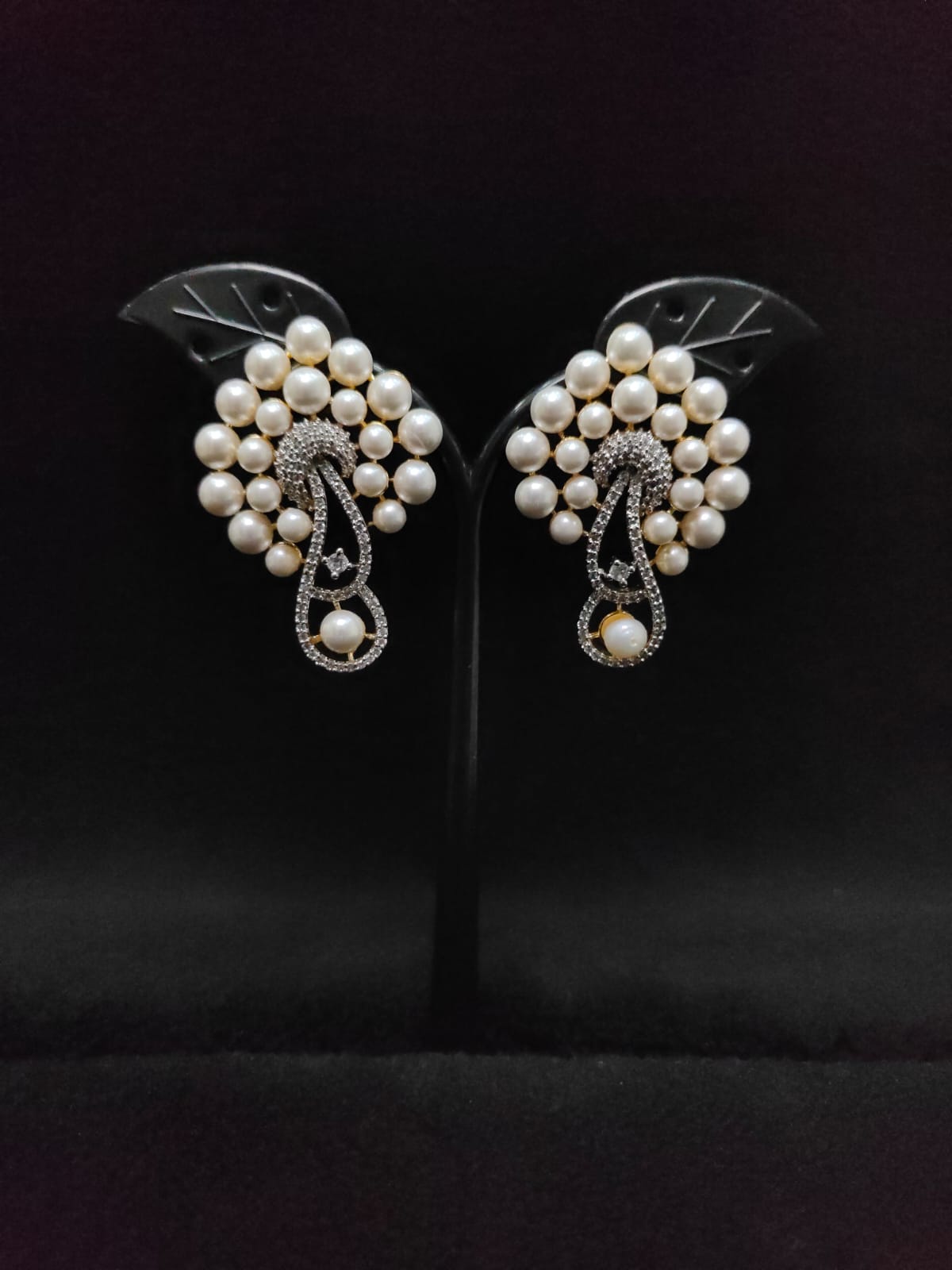 GOLD POLISH STONE AND PEARL DESIGN ARRINGS