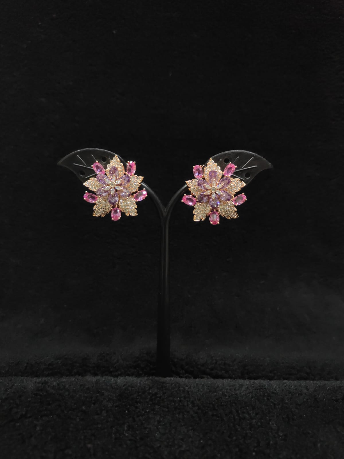 3D FLORAL DESIGN WITH AD ZIRCON STONE EARRINGS
