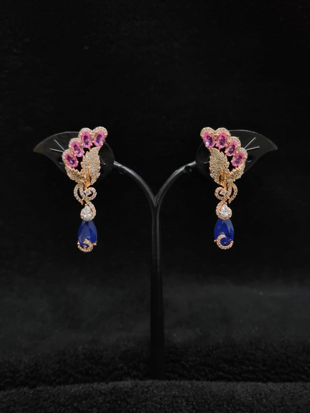 FEATHER DESIGN ROSE GOLD POLISH AD ZIRCON STONE EARRINGS