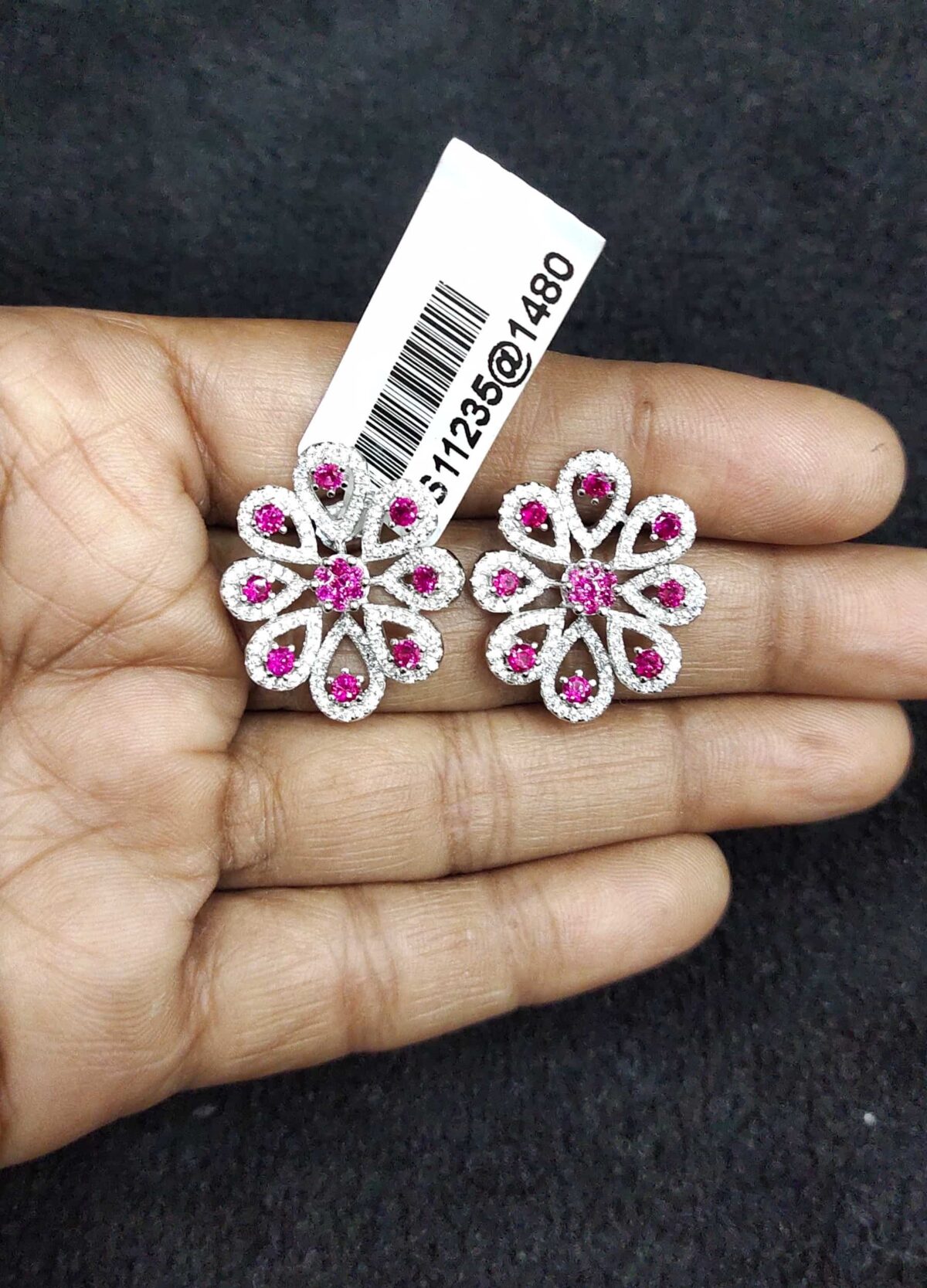 92.5 SILVER COLLECTIONS BUTTON TYPE BOTTLE GREEN,RUBY AND NAVY BLUE COLOR EARRINGS