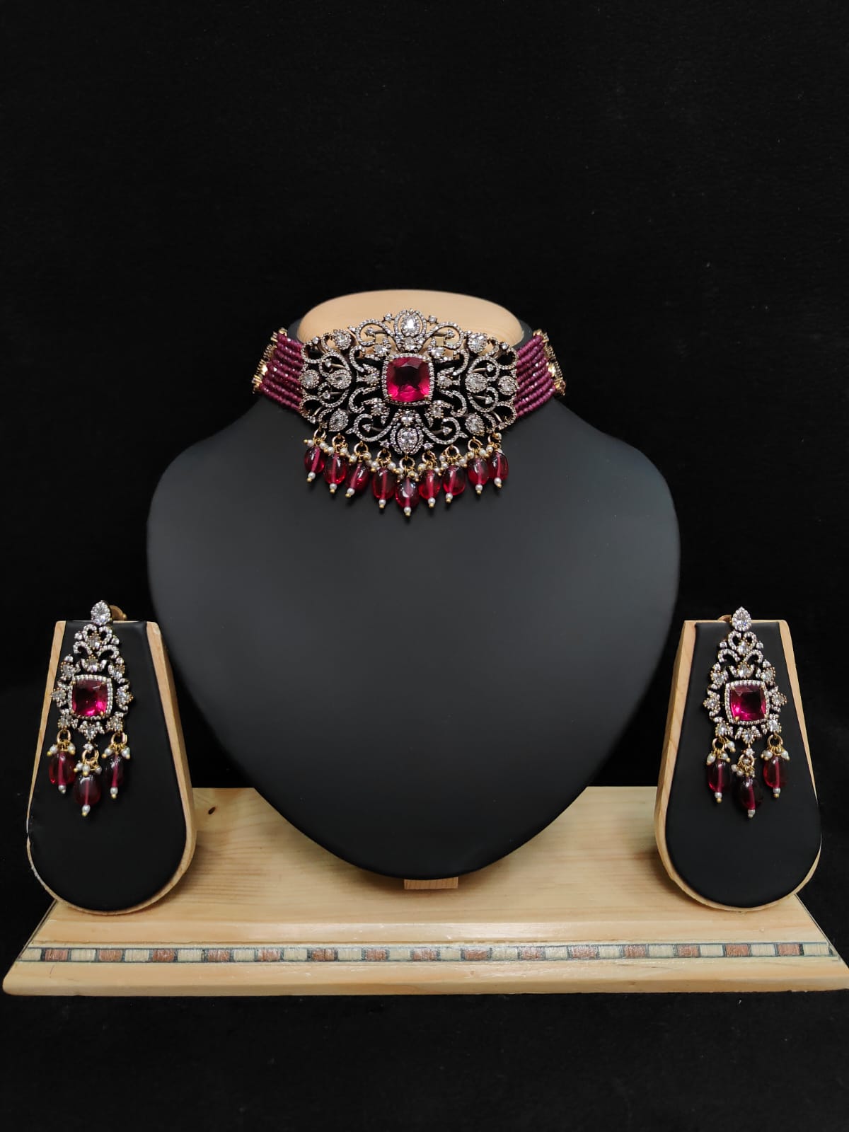 VICTORIAN POLISH CHOKKER WITH BEADS HANGING WITH EARRINGS