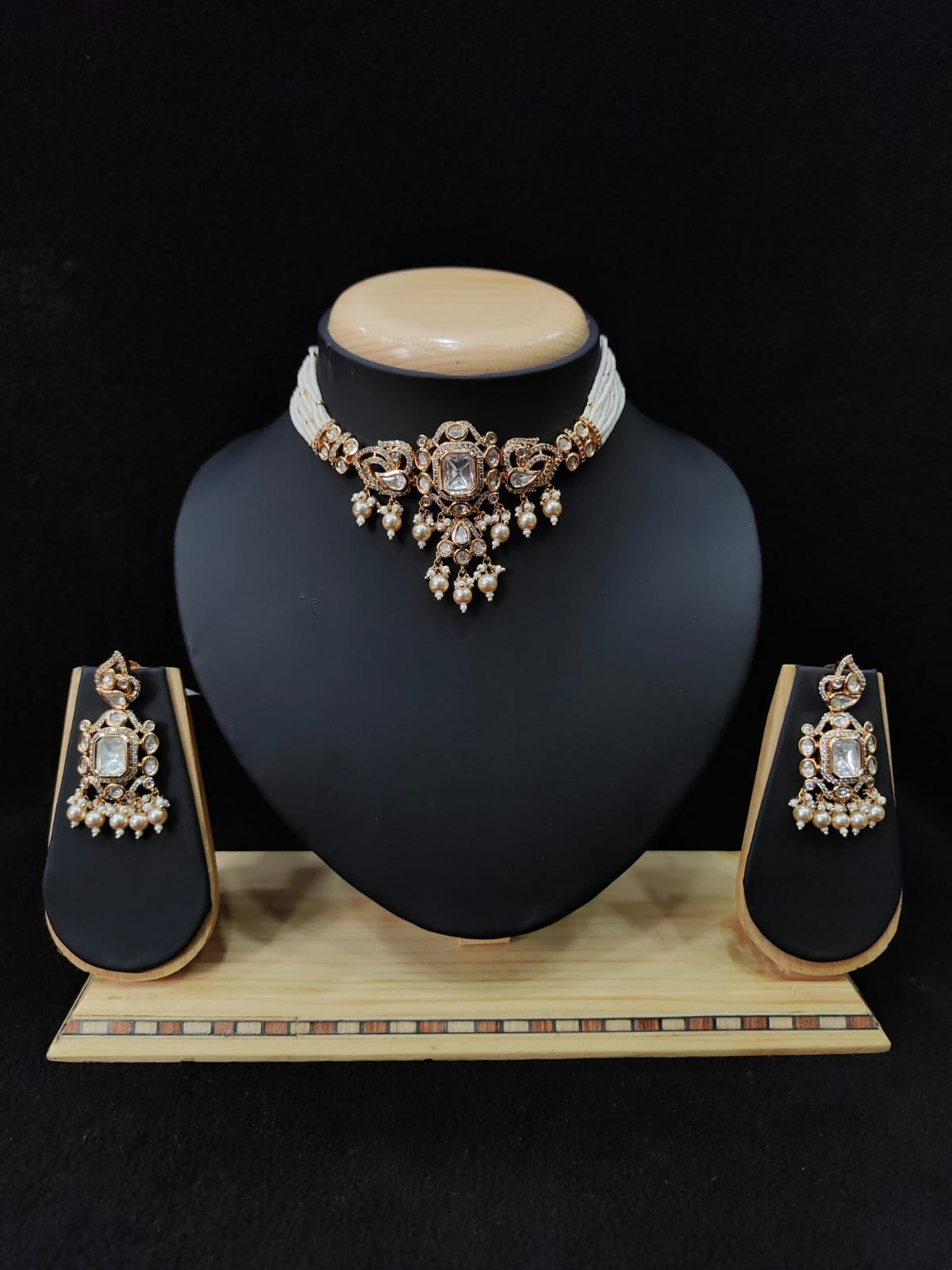 RICE PEARL WITH KUNDHAN STONE CHOKKER WITH EARRINGS