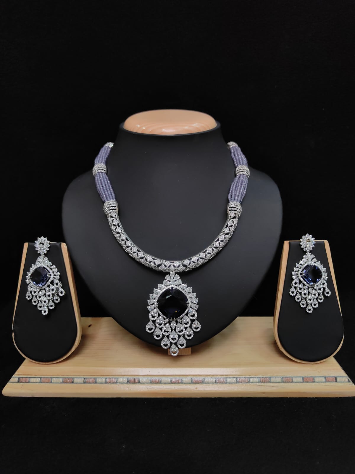 SILVER POLISH CRYSTAL AND NECKLACE WITH EARRINGS