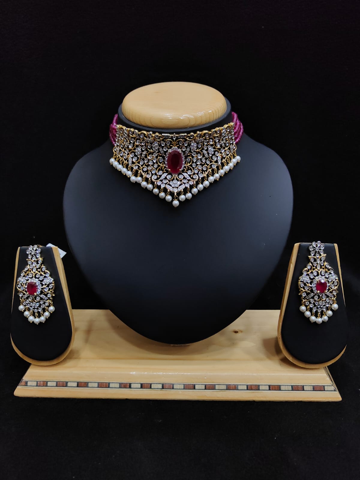 TWO TONE POLISH CHOKKER TYPE MALASET WITH EARRINGS