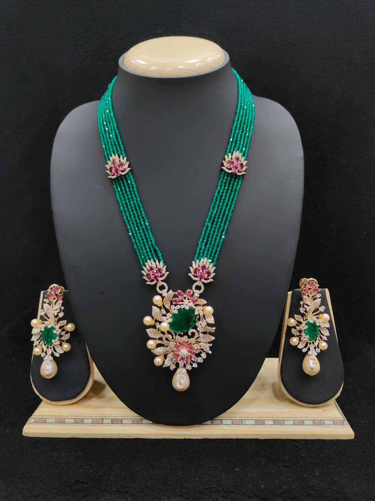 FLORAL DESIGN CRYSTAL HARAM WITH CLIP ON EARRINGS