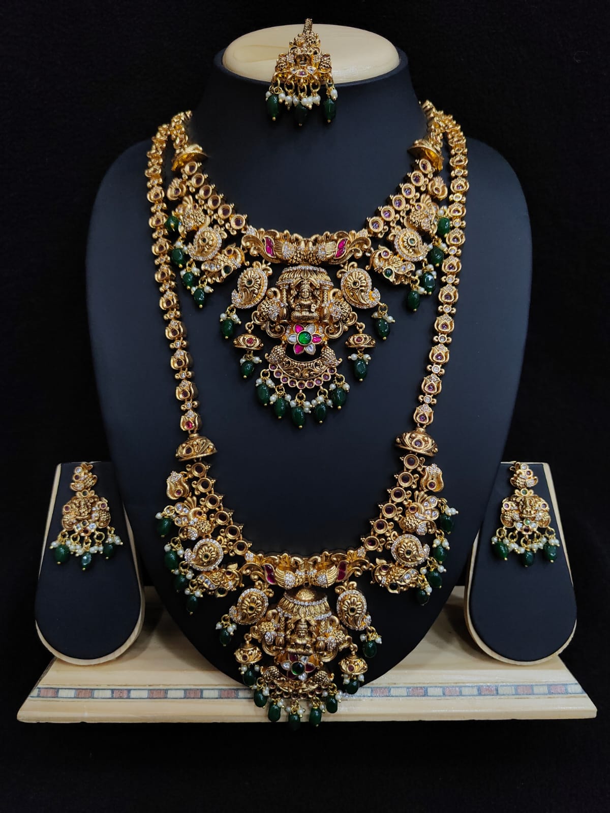 LAKSHMI AND MANGO DESIGN ANTIQUE SEMI BRIDAL SET WITH EARRINGS AND TIKKA