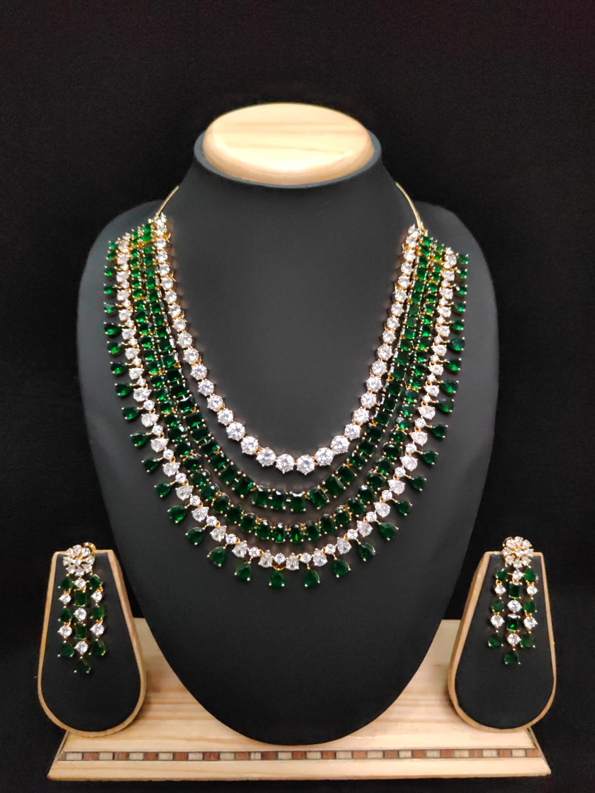 AD ZIRCON STONE HARAM WITH EARRINGS