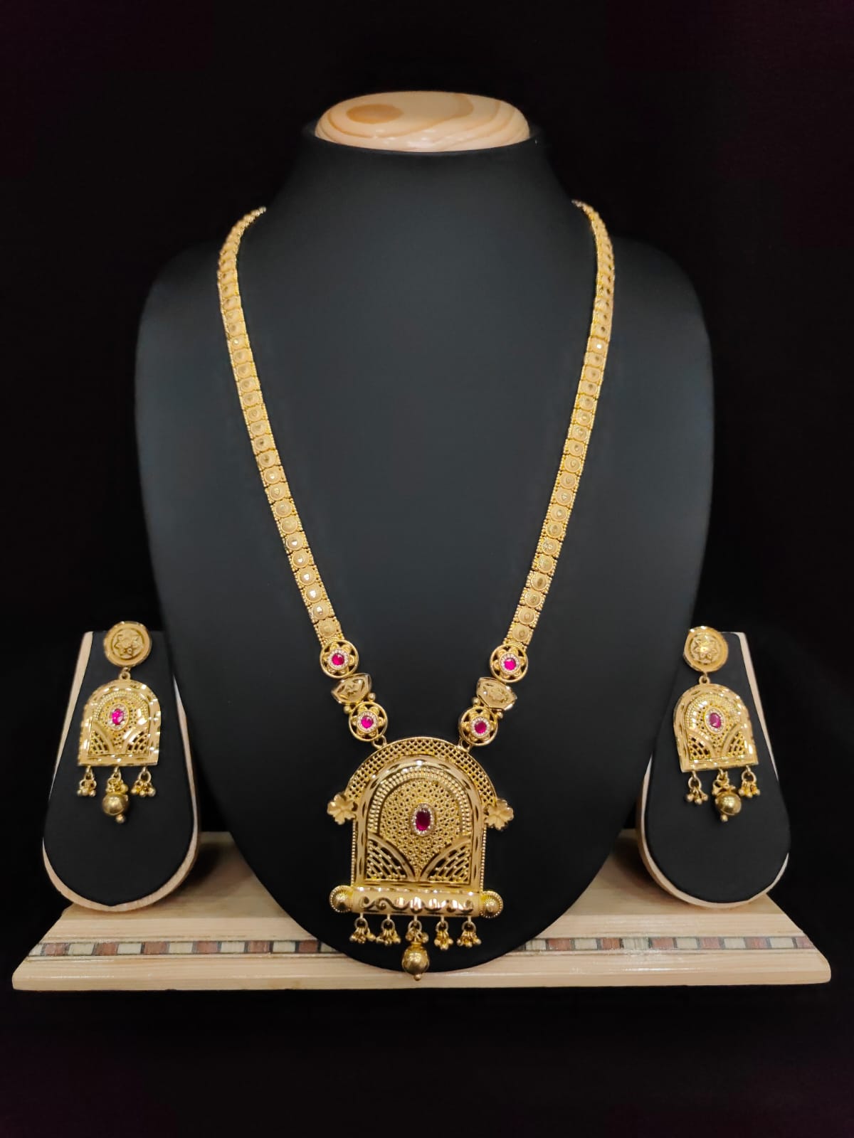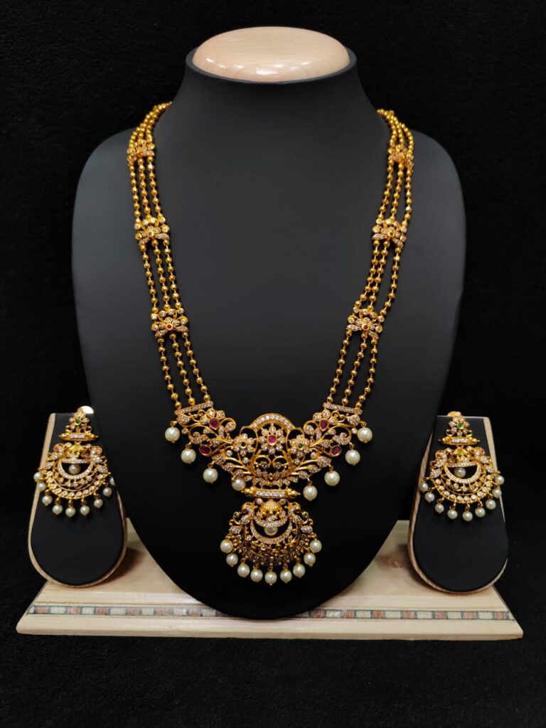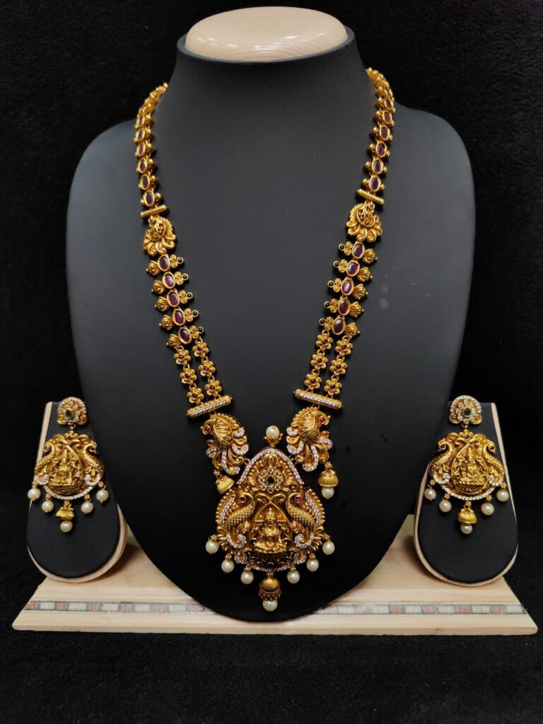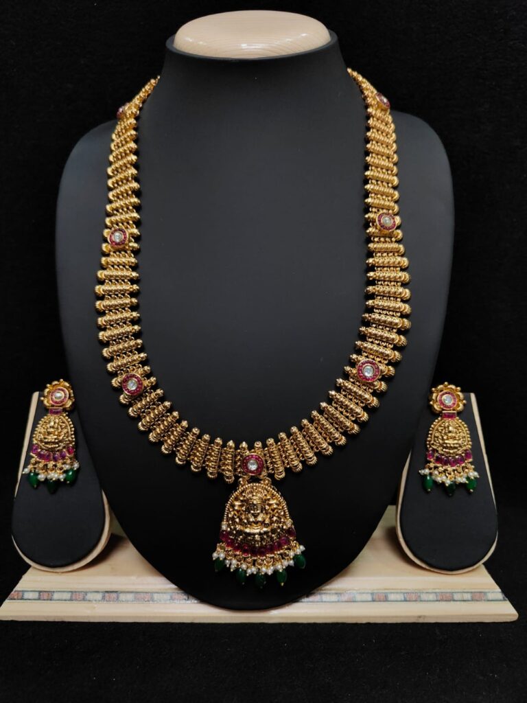 GOLD FINISH HARAM WITH EARRINGS