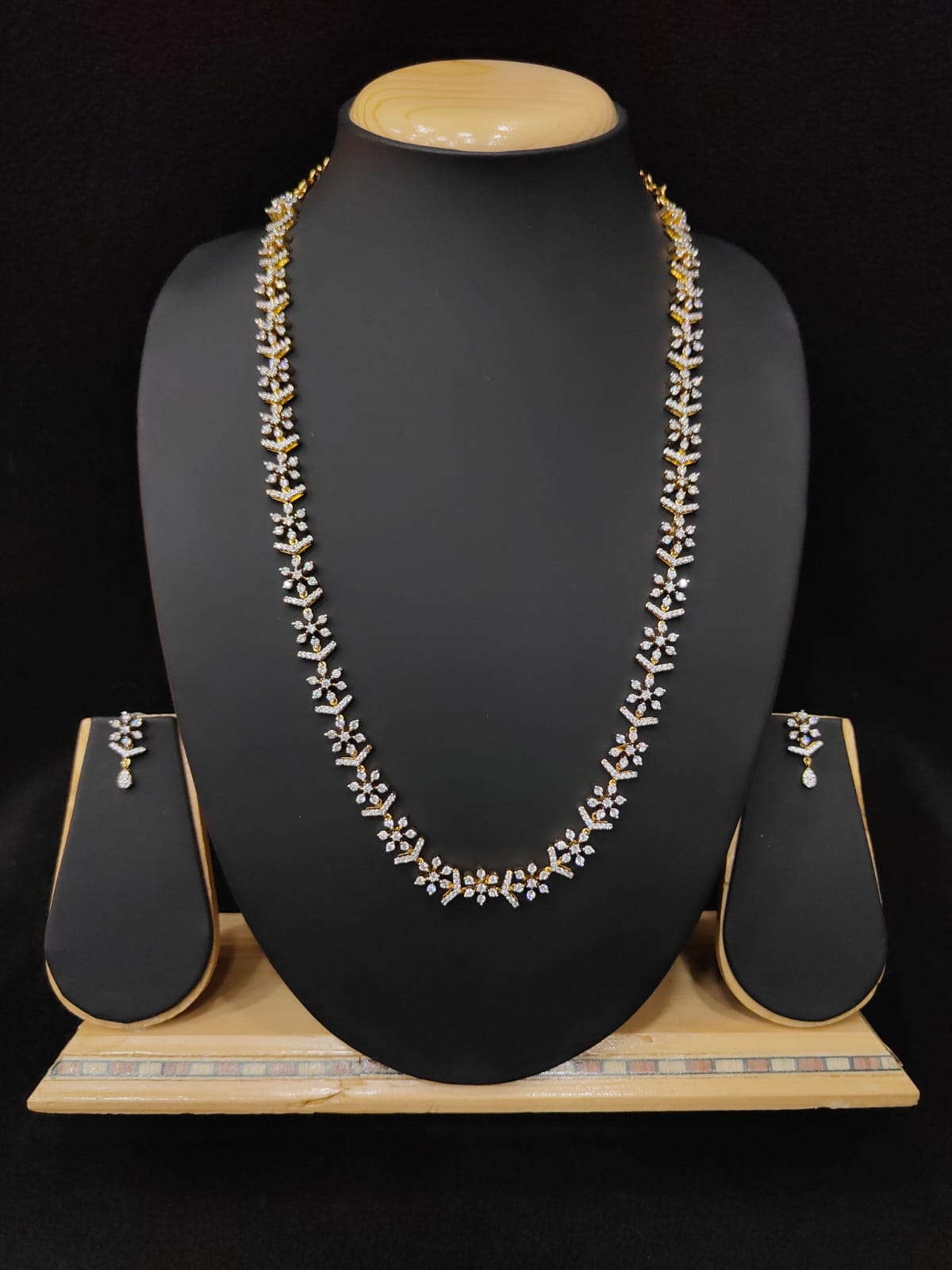 FLORAL DESIGN AD ZIRCON STONE HARAM WITH EARRINGS