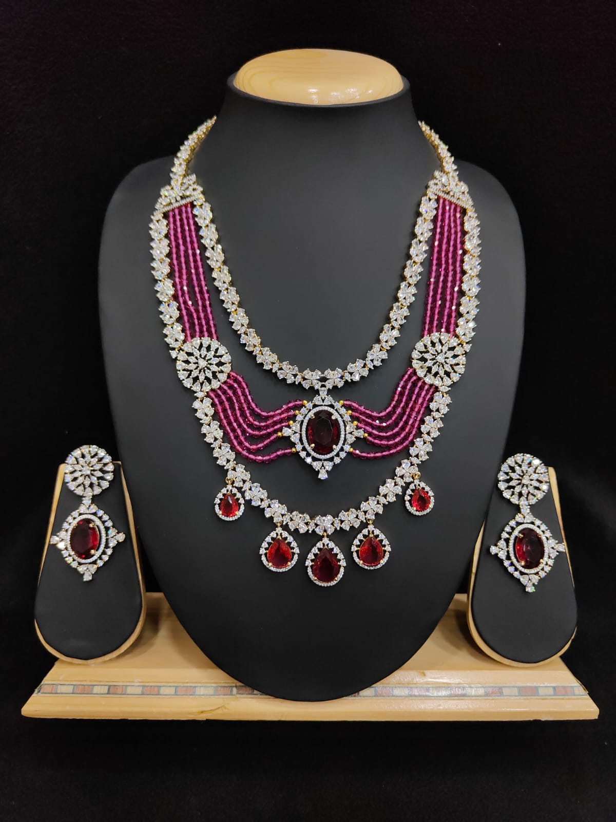 FLORAL DSIGN AD ZIRCON STONE LAYERED STONE HARAM WITH EARRINGS