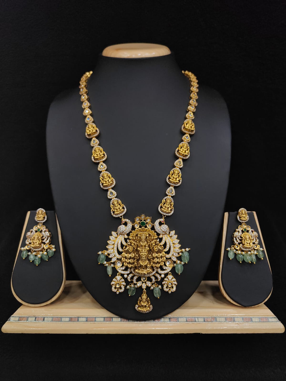 LAKSHMI AND PEACOCK DESIGN ANTIQUE HARAM WITH EARRINGS
