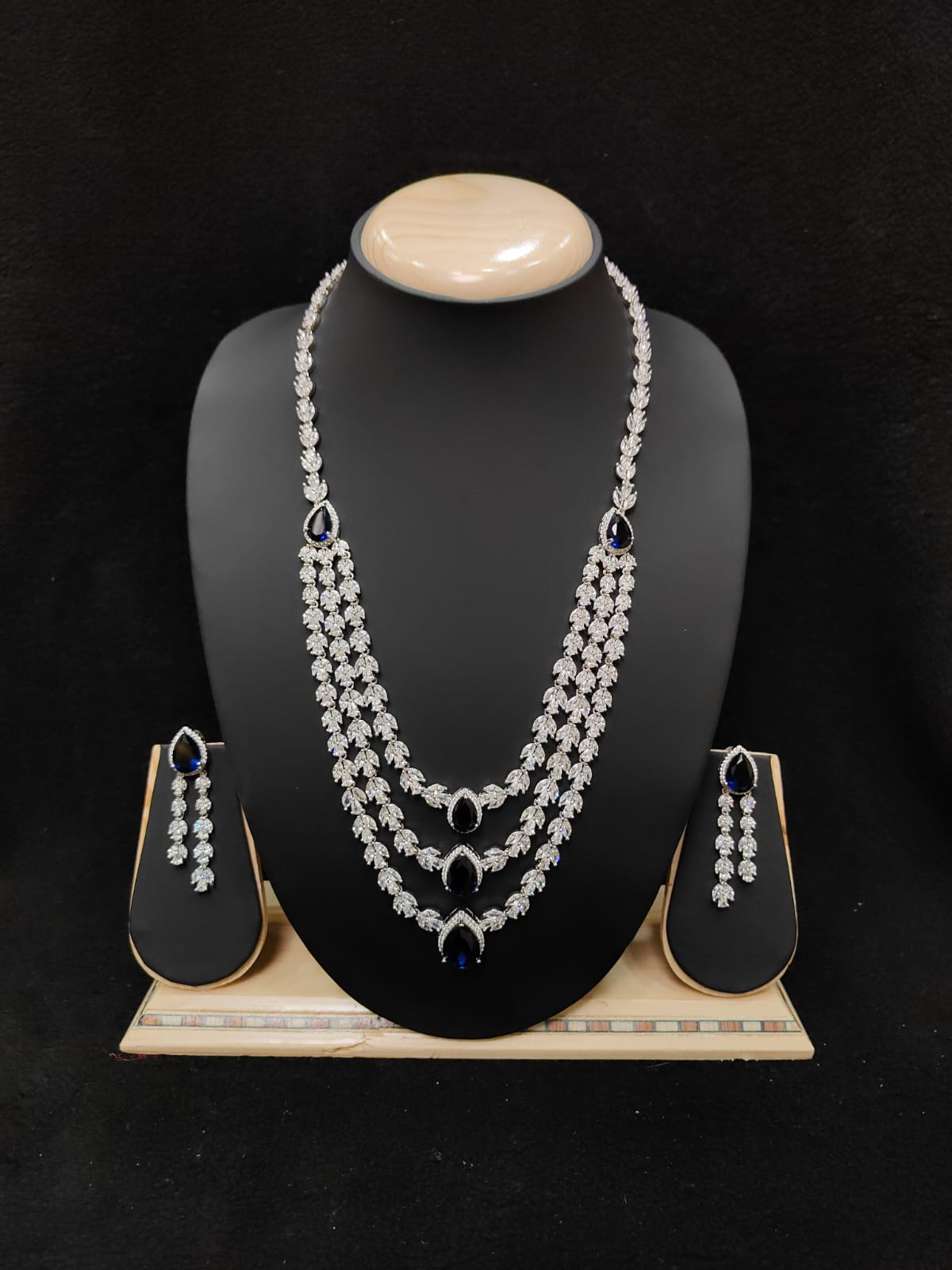 THREE LAYER AD ZIRCON STONE HARAM WITH EARRINGS