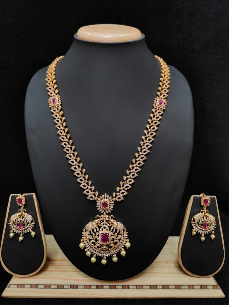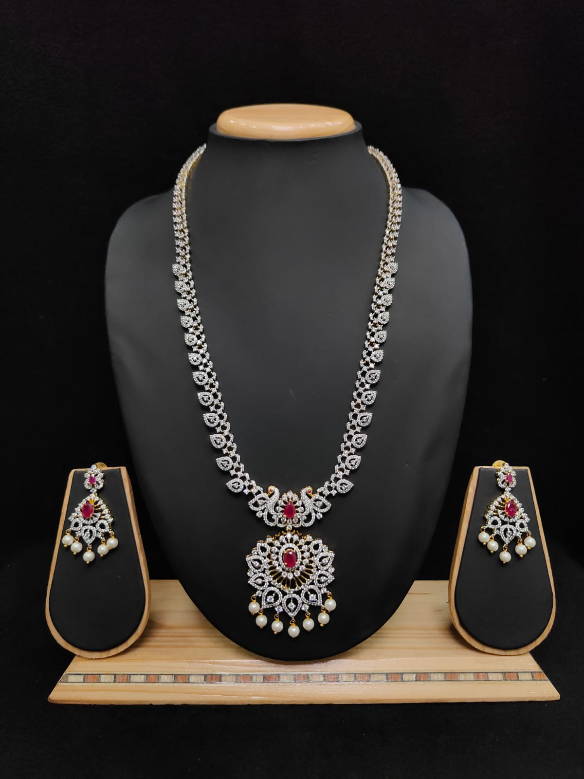 PEACOCK DESIGN STONE HARAM WITH EARRINGS
