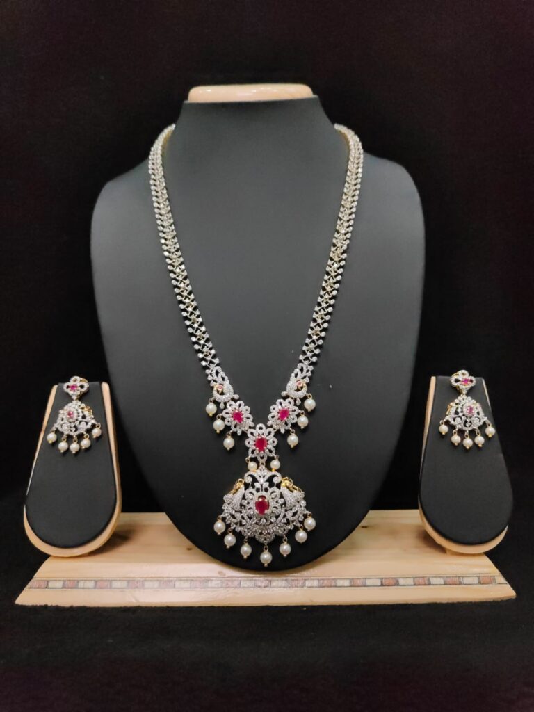 PEACOCK DESIGN ANTIQUE HARAM WITH EARRINGS