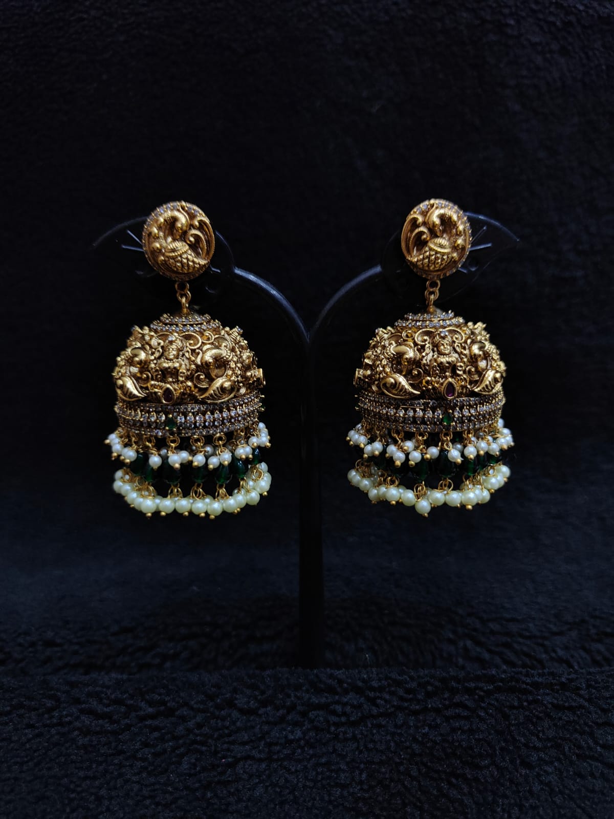 LAKSHMI WITH PEACOCK DESIGN ANTIQUE JUMKA