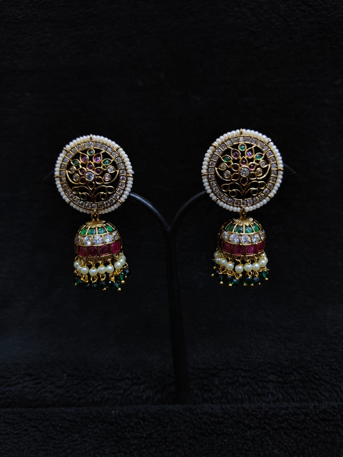 FLORAL DESIGN ANTIQUE FINISH KEMP STONE JUMKA WITH RICE PEARLS