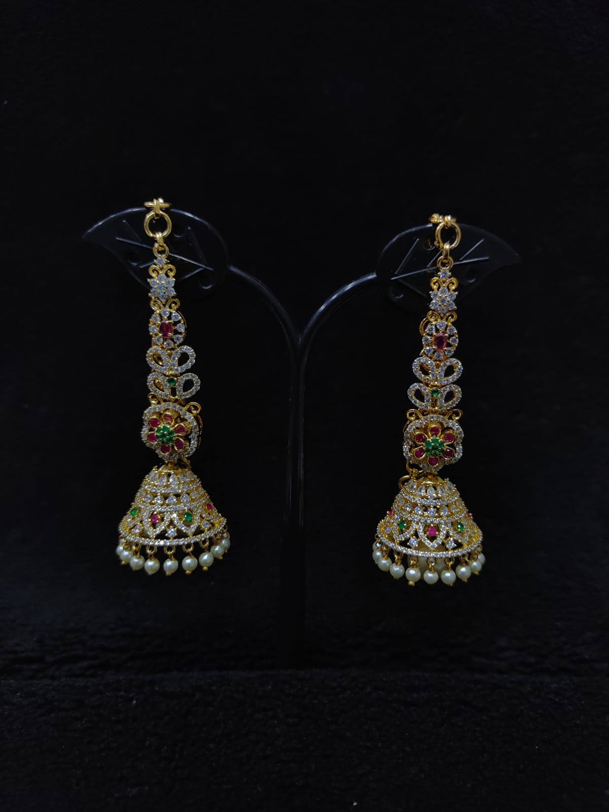 FLORAL DESIGN MULTI COLOR STONE PEARL HANGING JUMKA WITH MATTEL