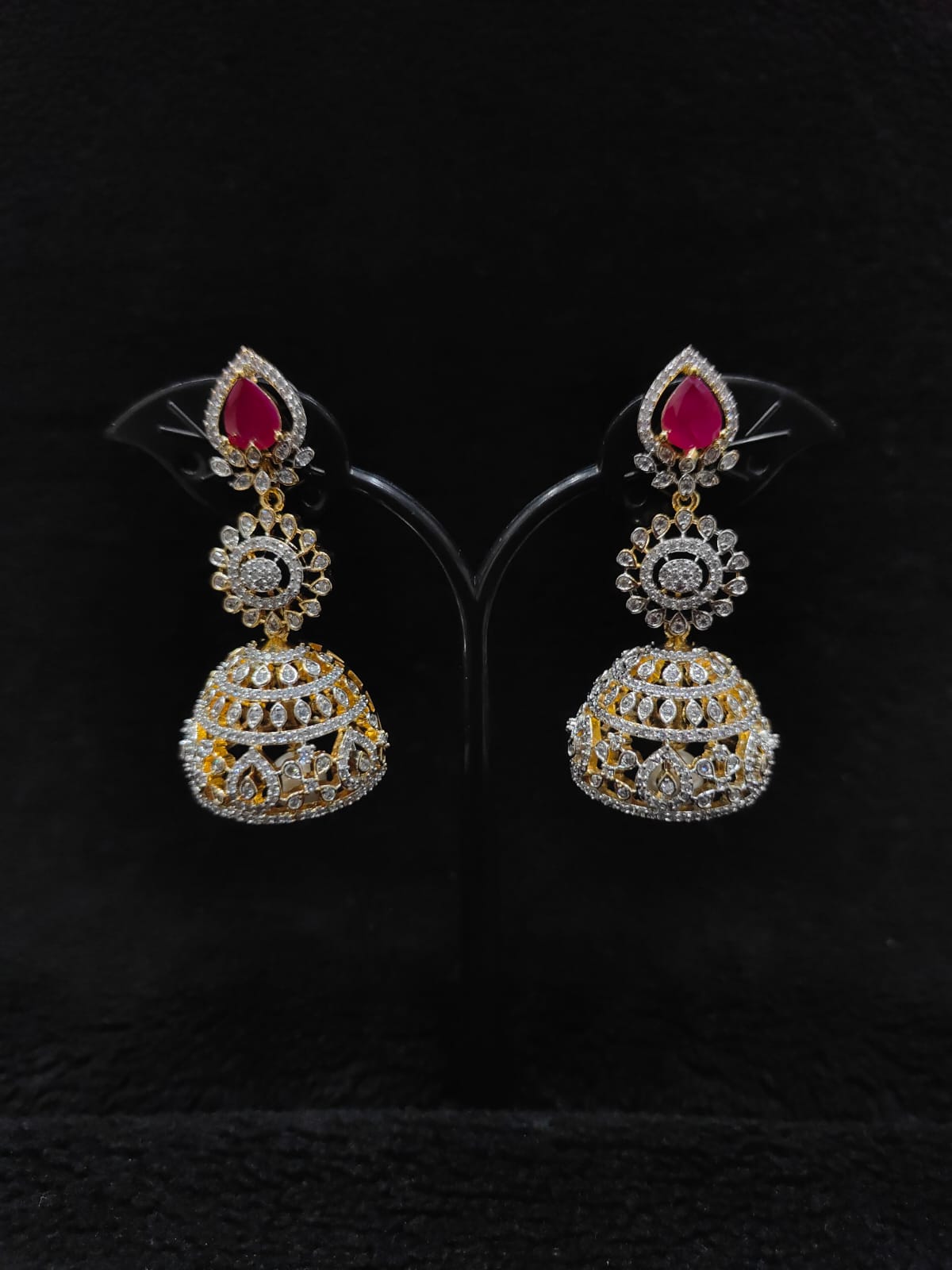 TWO TONE POLISH AD ZIRCON LONG STONE JUMKA WITH PEARL HANGING