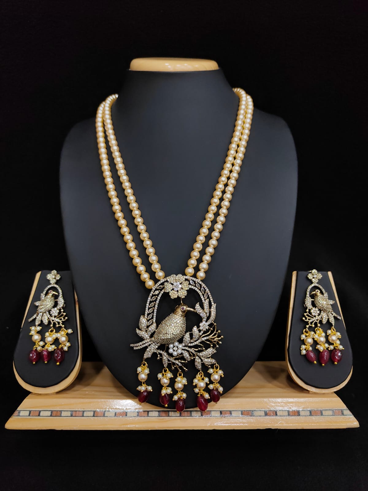 KURUVI DESIGN MEHANDI FINISH WITH PEARL MALA WITH EARRINGS