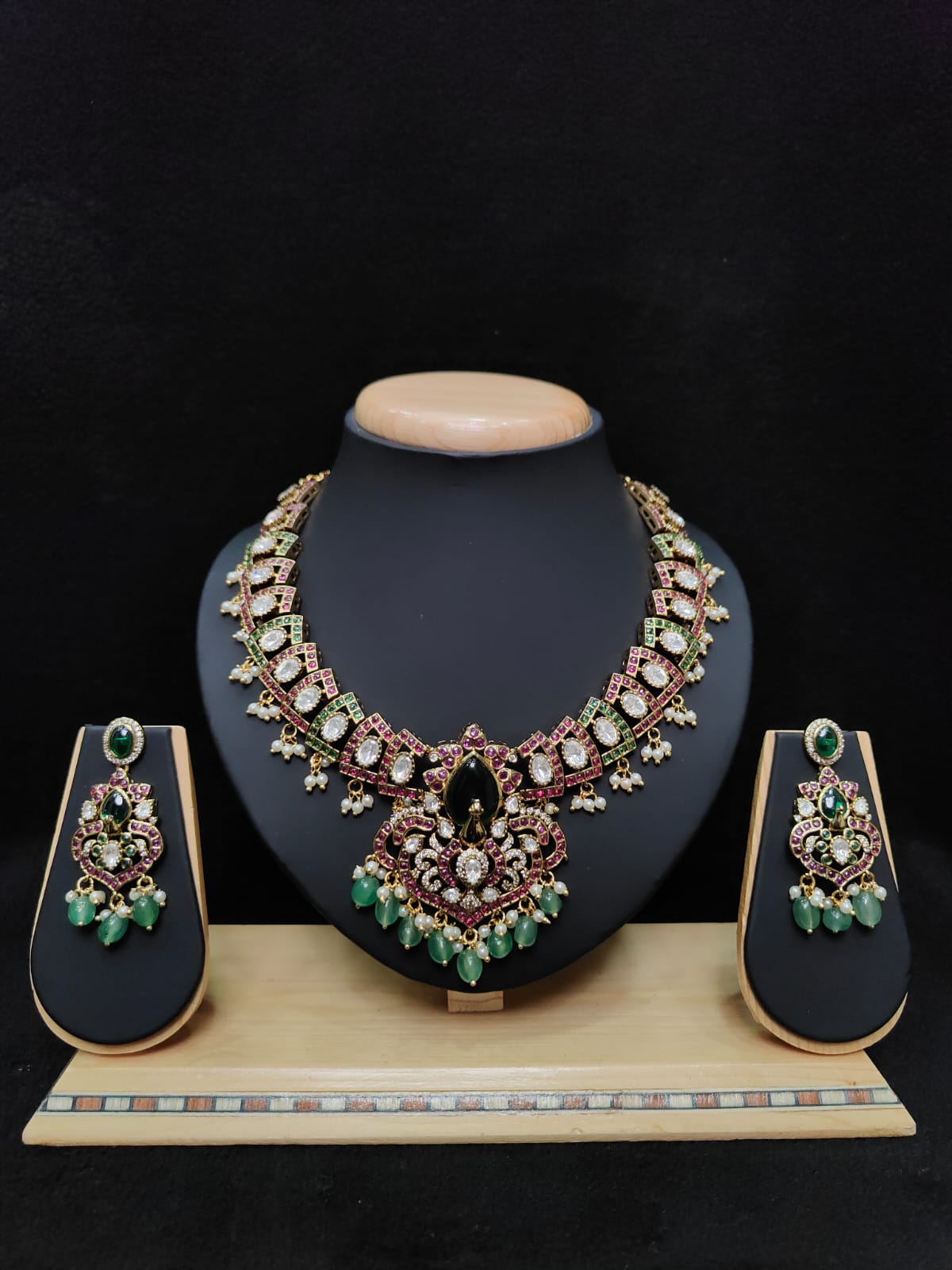 PEACOCK DESIGN ANTIQUE NECKLACE WITH EARRINGS