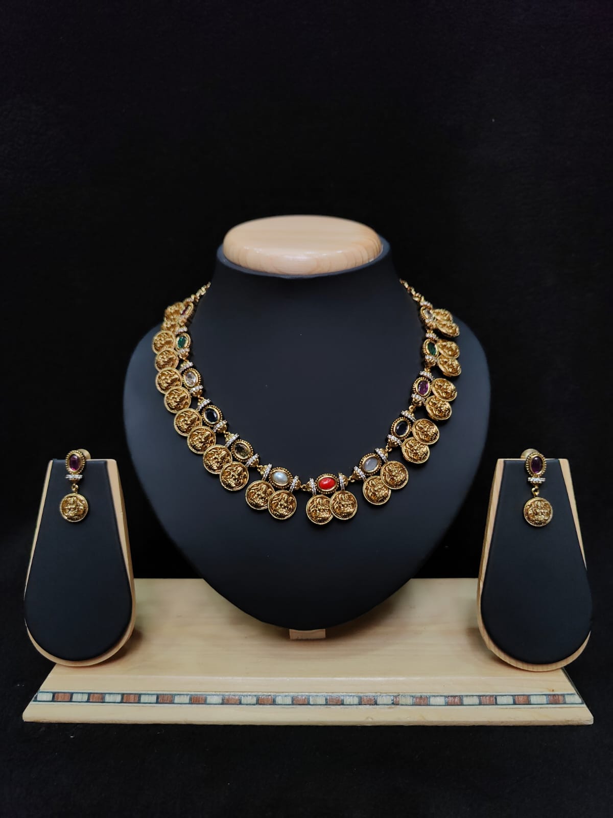 NAVARATHNA STONE NECKLACE WITH EARRINGS
