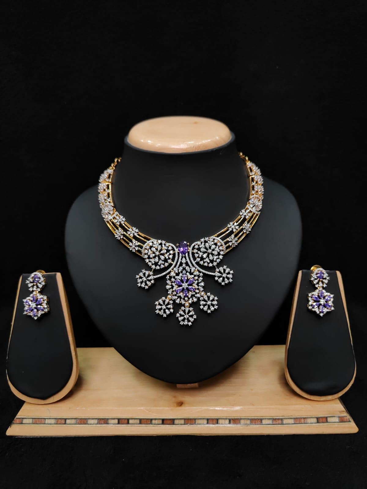 AD ZIRCON STONE NECKLACE WITH EARRINGS