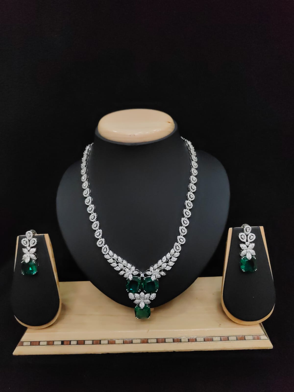 SILVER POLISH STONE NECKLACE WITH EARRINGS