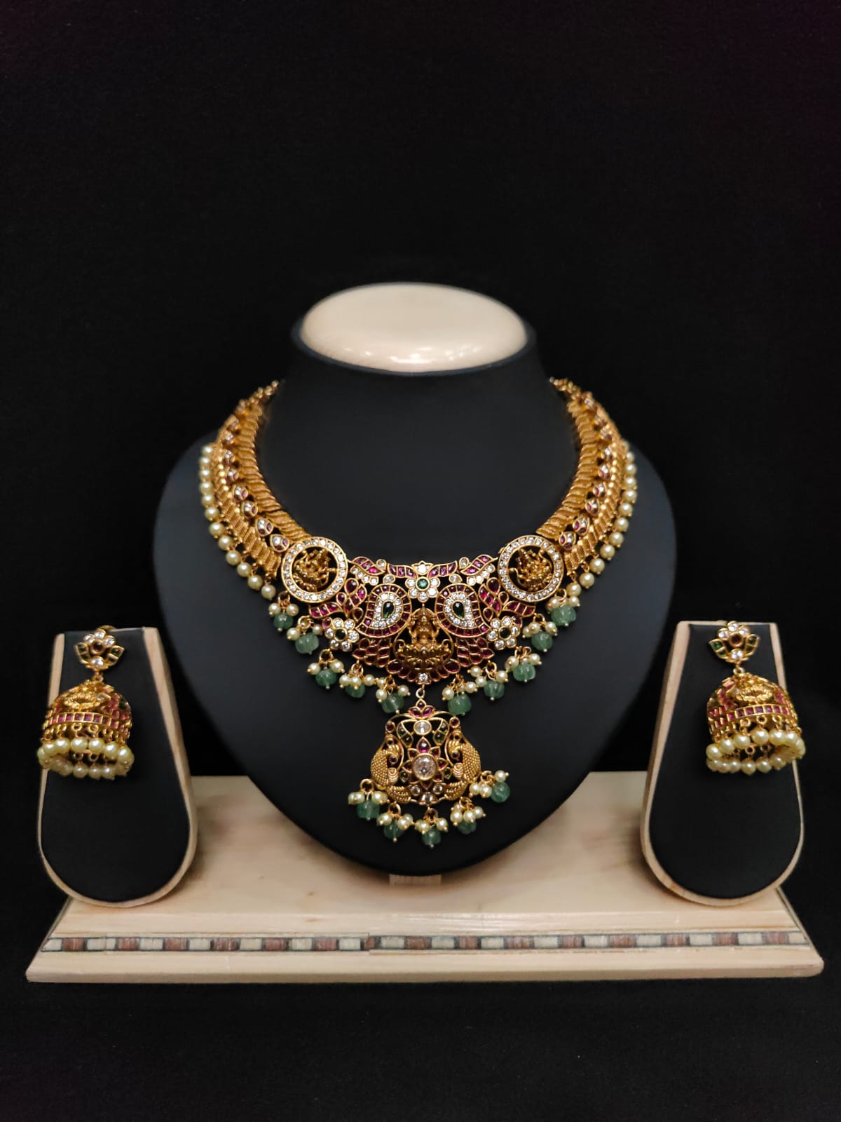 LAKSHMI AND MANGO DESIGN ANTIQUE NECKLACE WITH EARRINGS