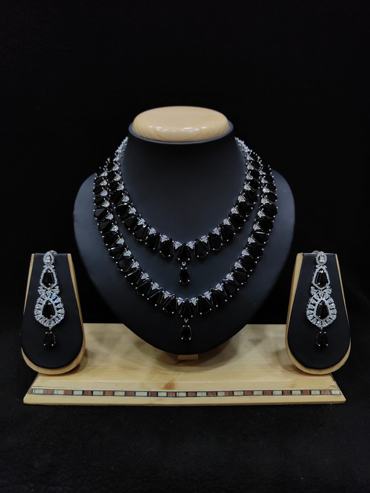 THILAGAM SHAPE AD ZIRCON STONE NECKLACE WITH EARRINGS