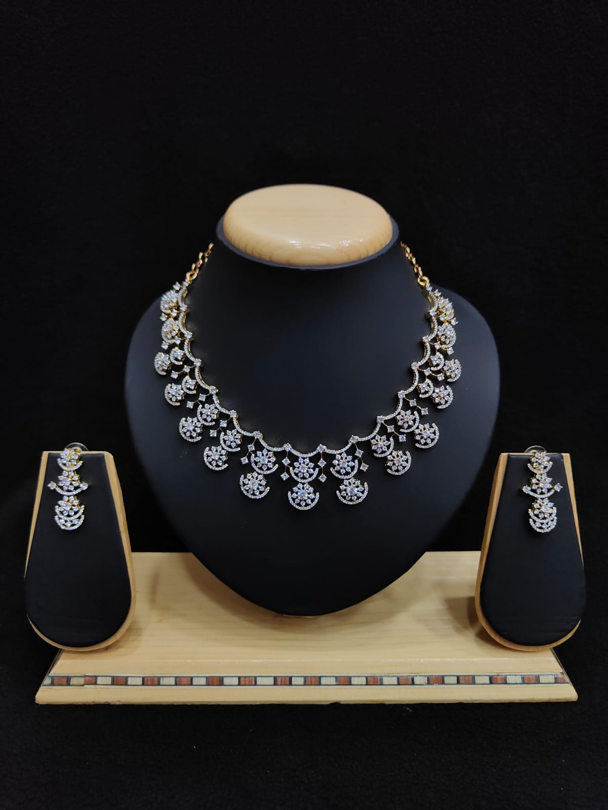 FLORAL DESIGN AD ZIRCON NECKLACE WITH EARRINGS