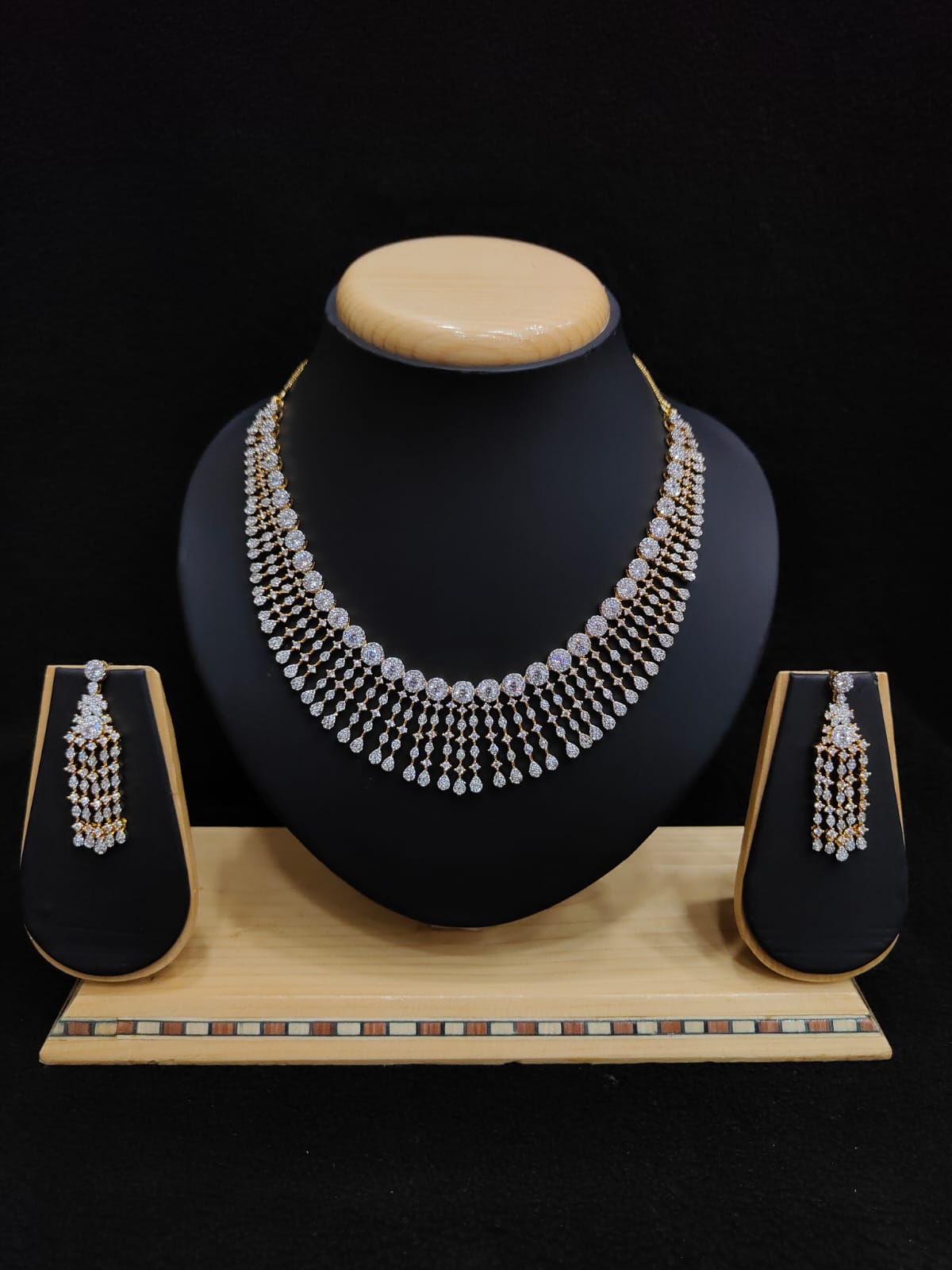 AD ZIRCON STONE TWO TONE POLISH NECKLACE WITH EARRINGS