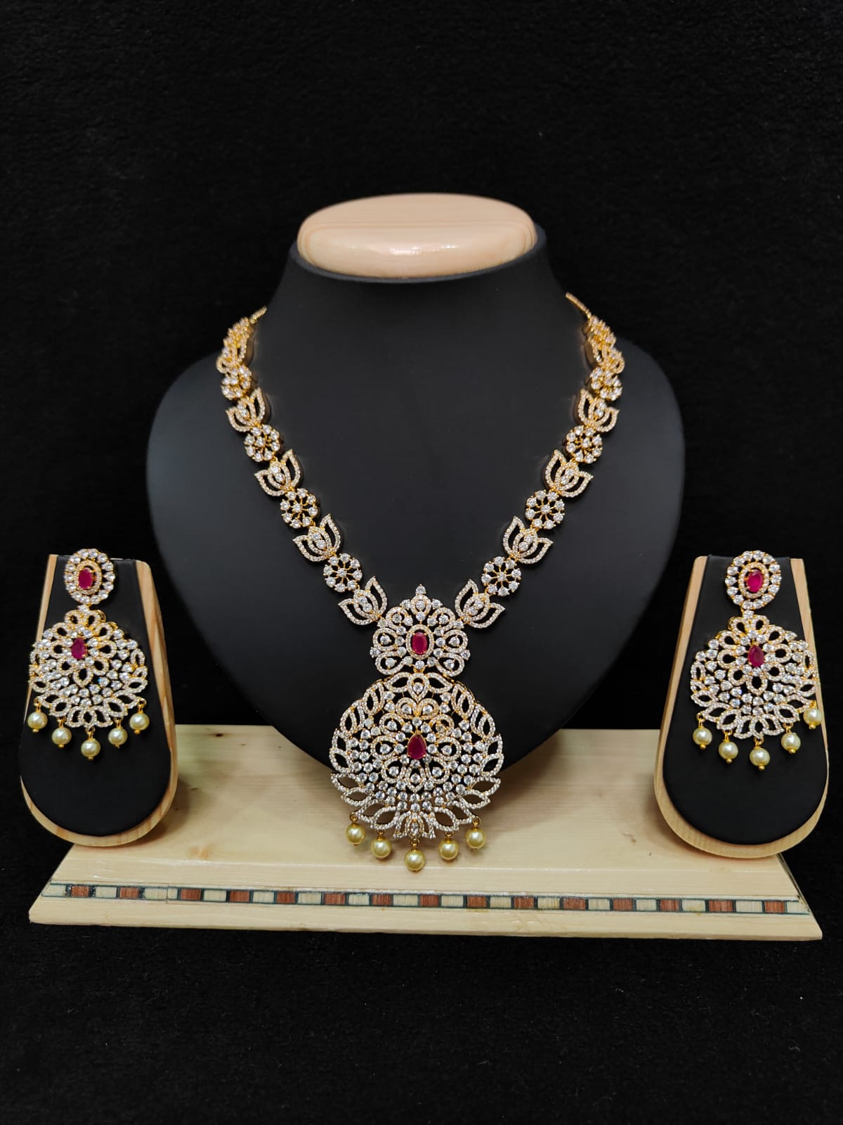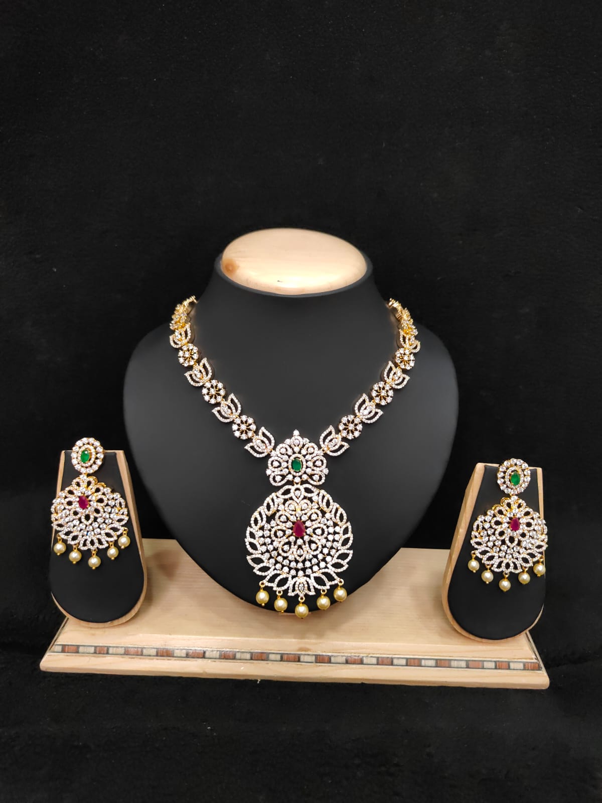 FLORAL DESIGN GOLD POLISH STONE NECKLACE WITH EARRINGS