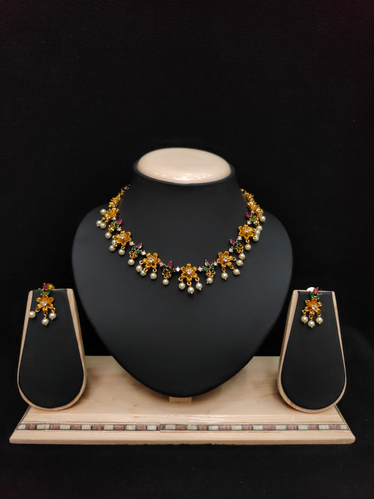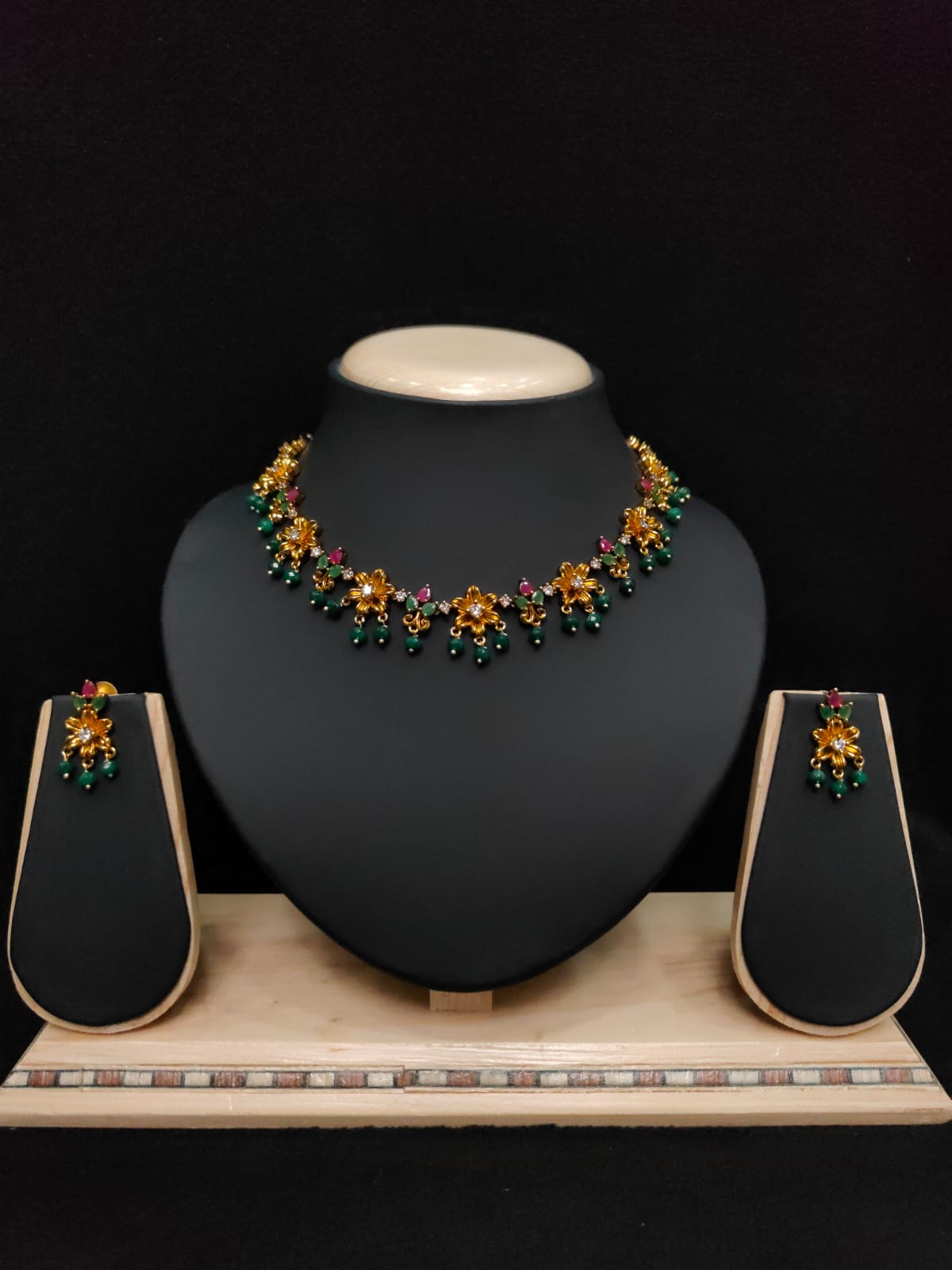 FLORAL DESIGN ANTIQUE NECKLACE WITH EARRINGS