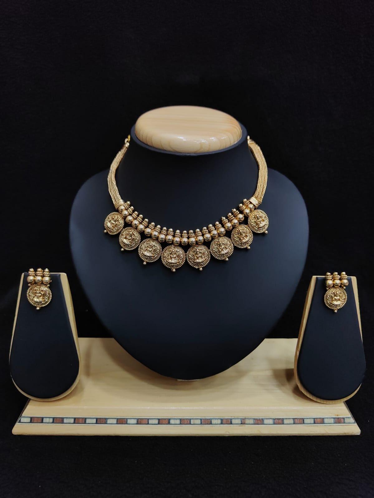 LAKSHMI COIN DESIGN ANTIQUE NECKLACE WITH EARRINGS