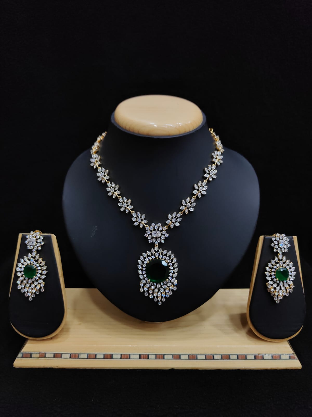 FLORAL DESIGN AD ZIRCON STONE NECKLACE WITH EARRINGS