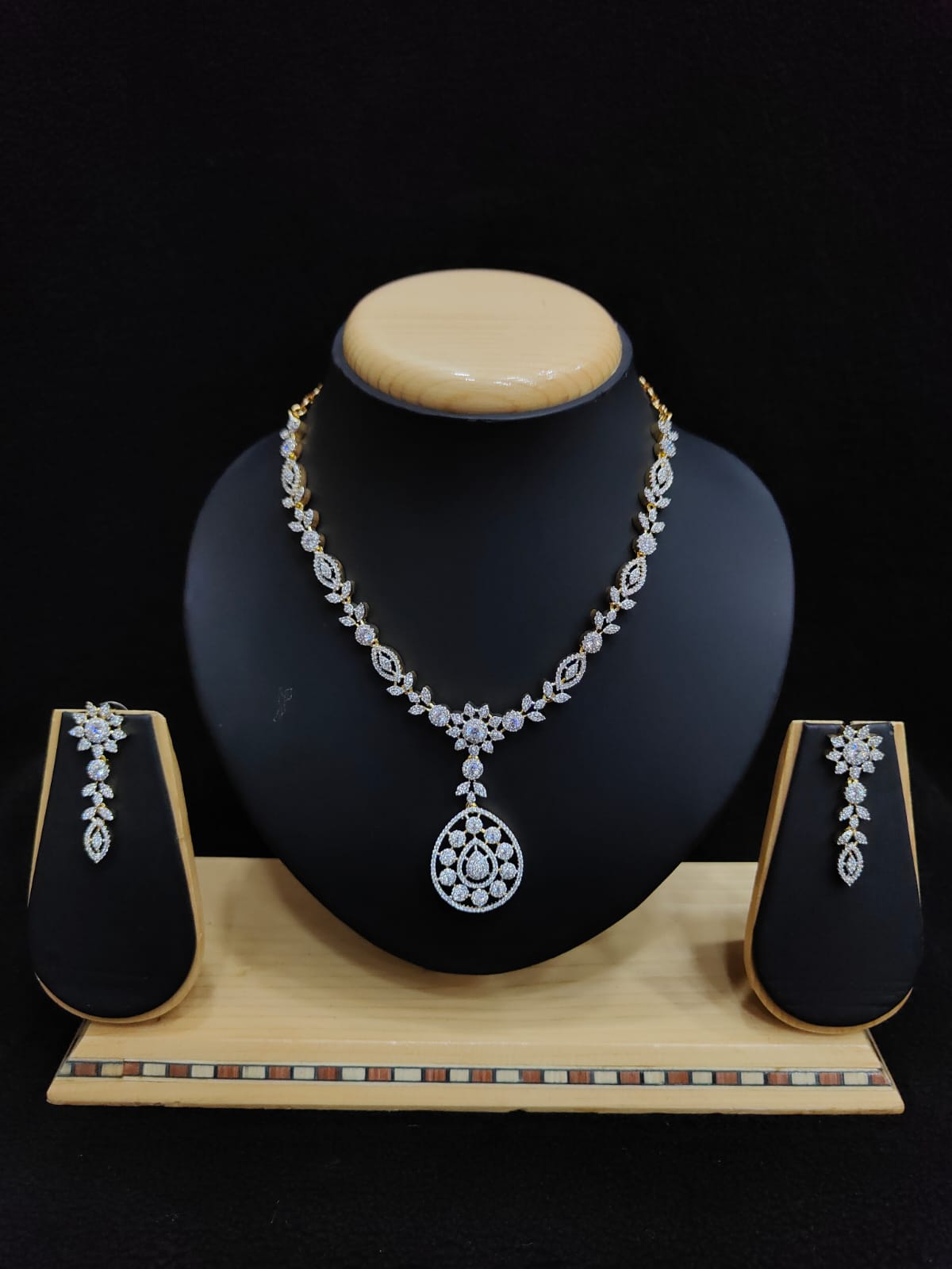 FLORAL DESIGN AD ZIRCON STONE NECKLACE WITH EARRINGS