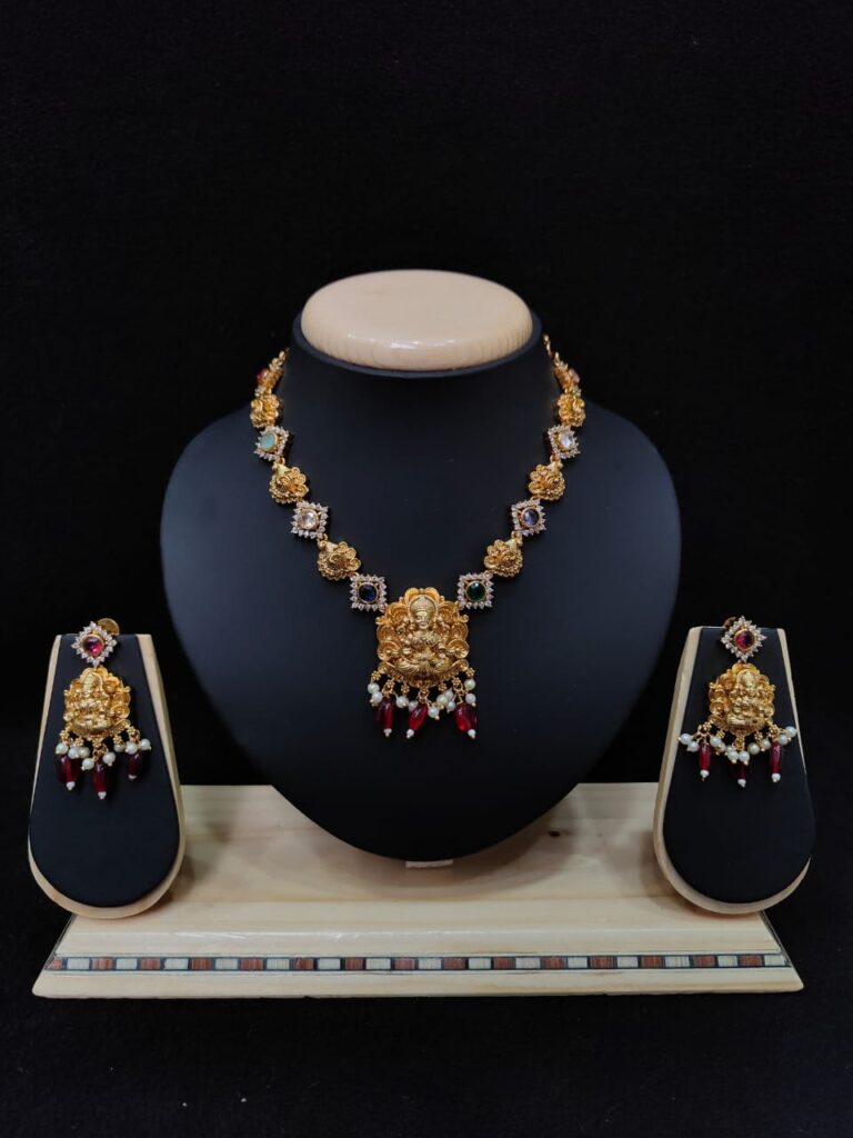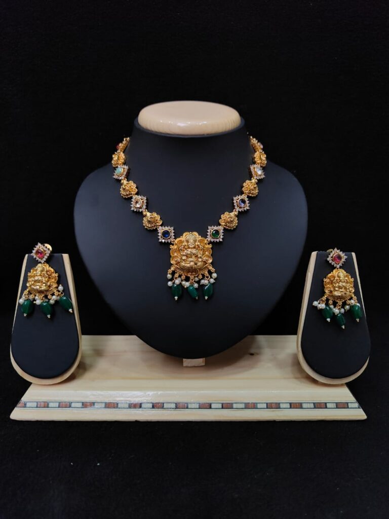 FLORAL DESIGN STONE NECKLACE WITH EARRINGS