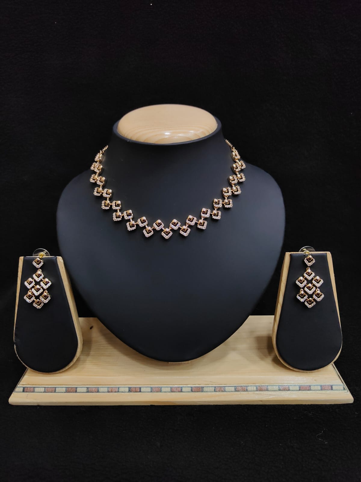DIAMOND SHAPR GOLD POLISH NECKACE WITH EARRINGS