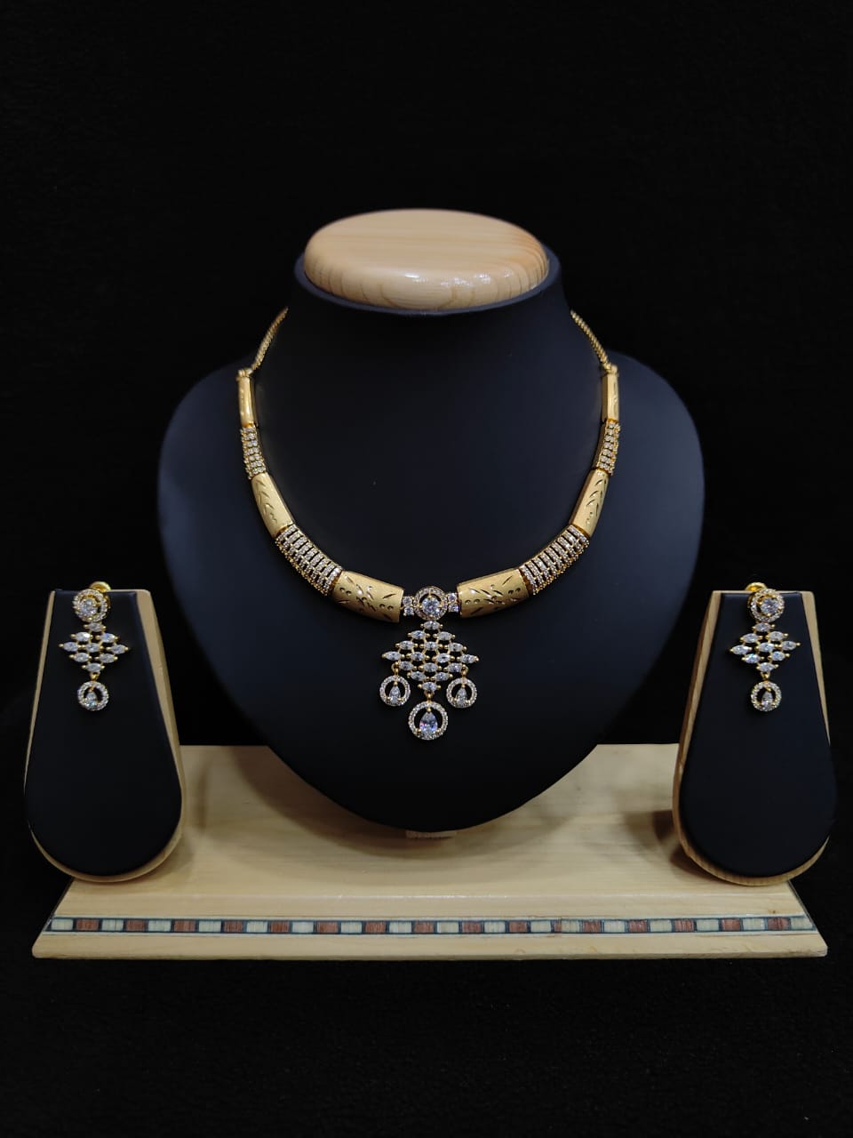 GOLD POLISH CASTING NECKLACE WITH EARRINGS